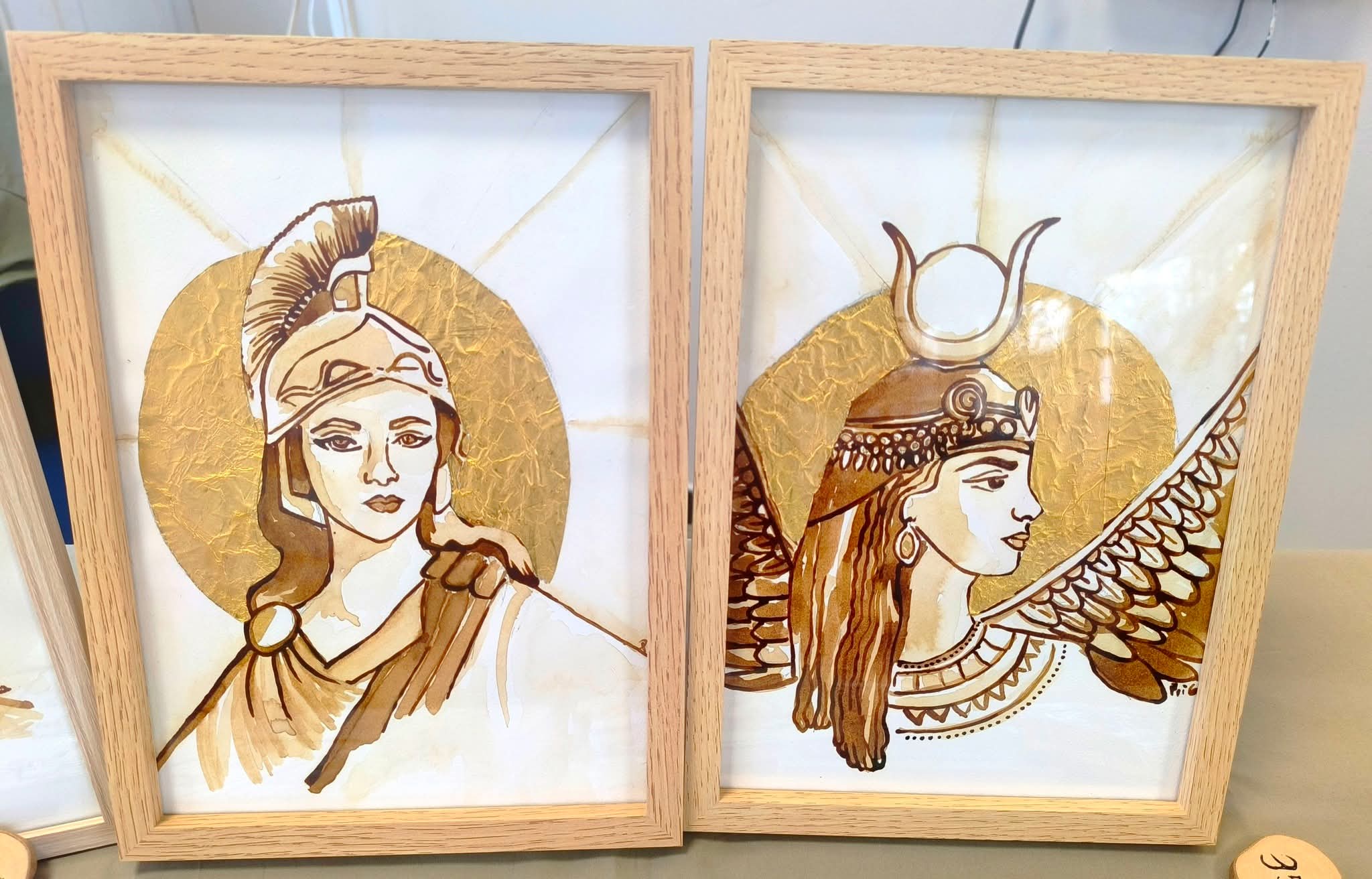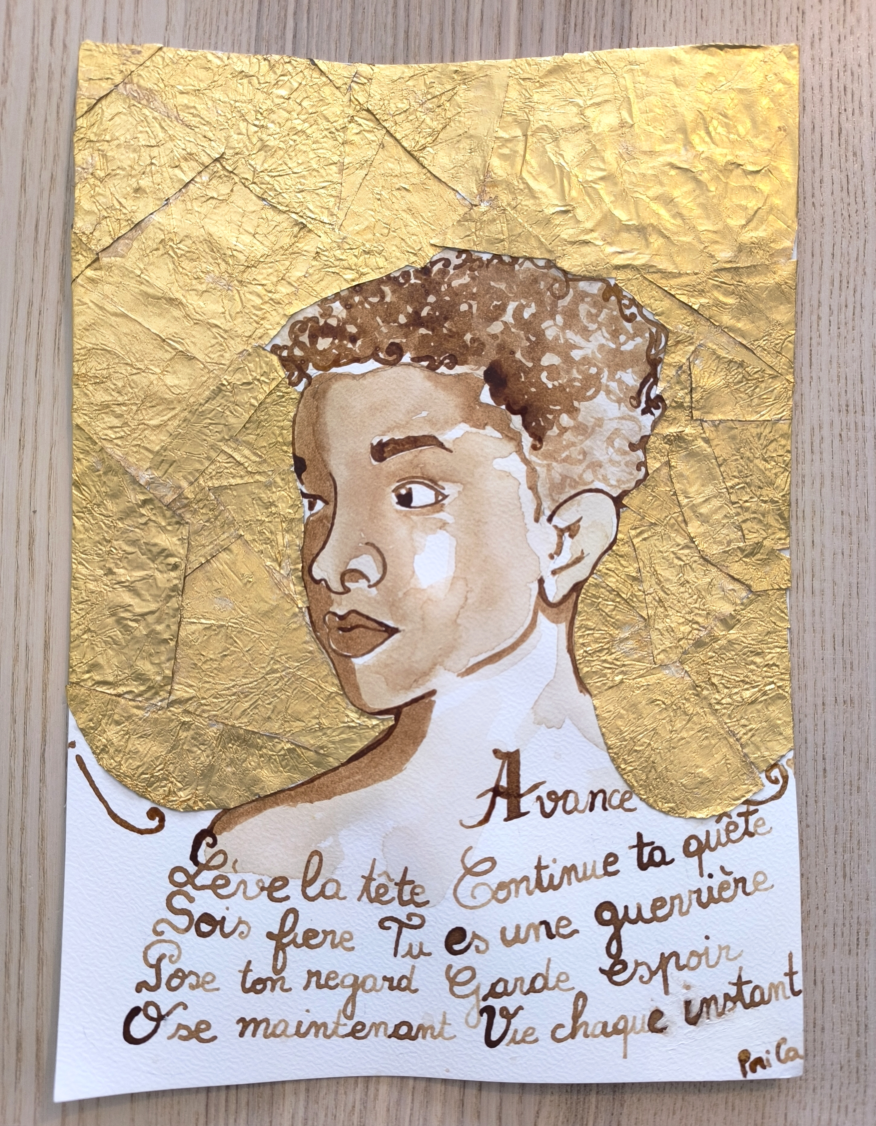- Aquarelle au café sur papier;