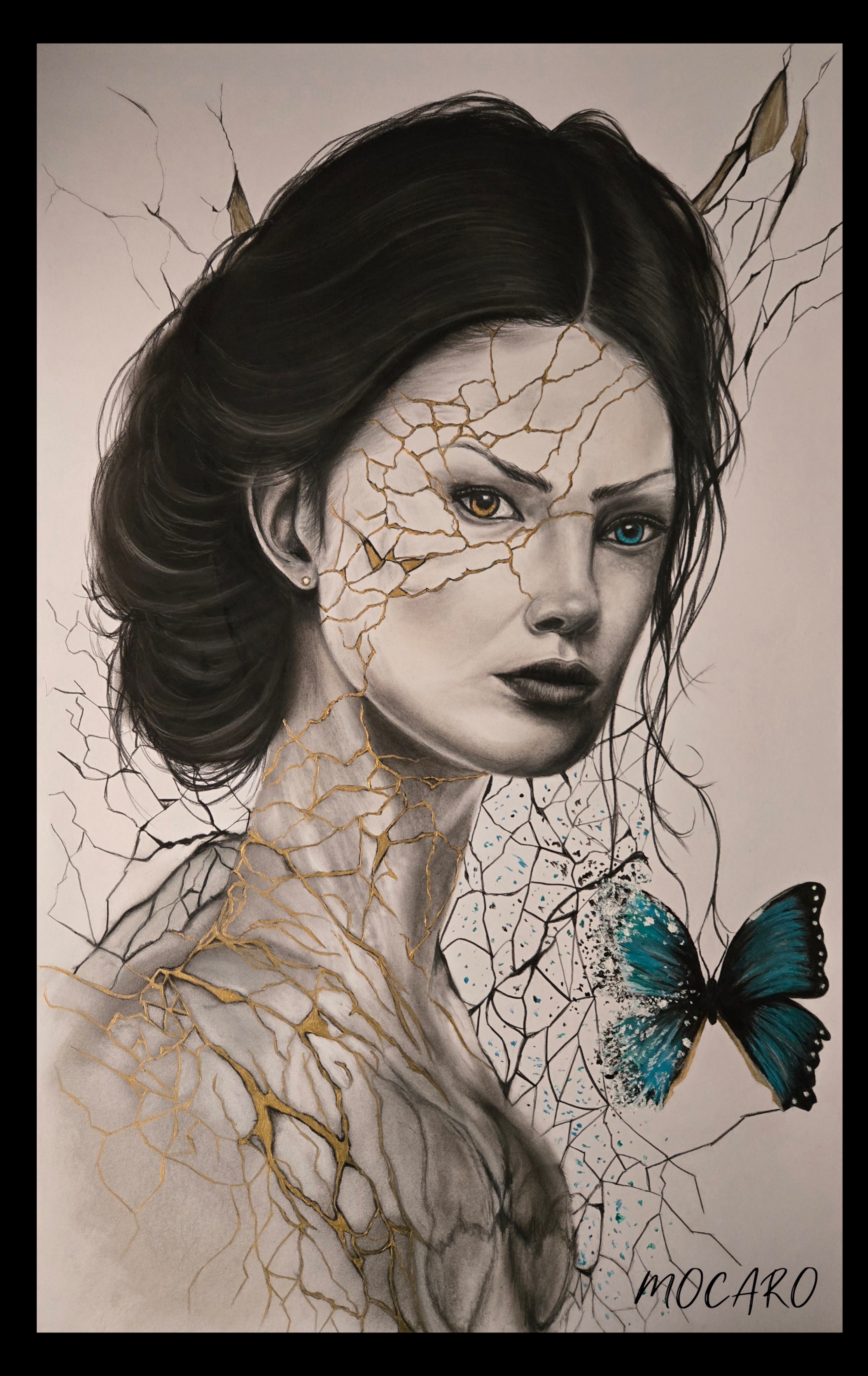 je travaille principalement aux pastels secs mais j’aime allier plusieurs techniques comme l’acrylique ou le crayon.