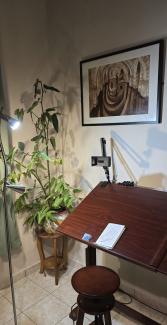 Mon atelier est à domicile, dans la pièce de vie principale.