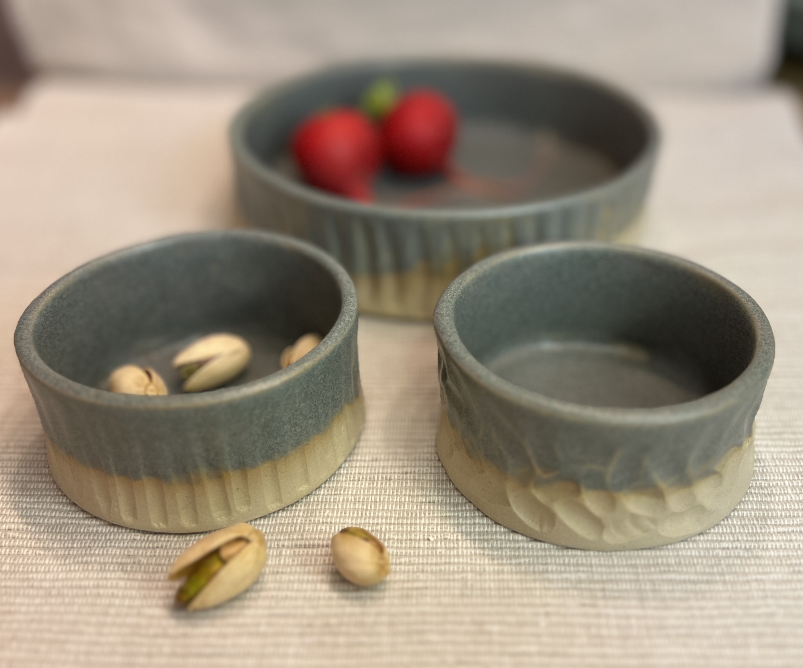Ancienne professeur des écoles, je me suis reconvertie dans la céramique. Je pratique le modelage principalement et un peu de tournage et crée des objets de décoration, de la vaisselle ainsi que des bijoux en grès.