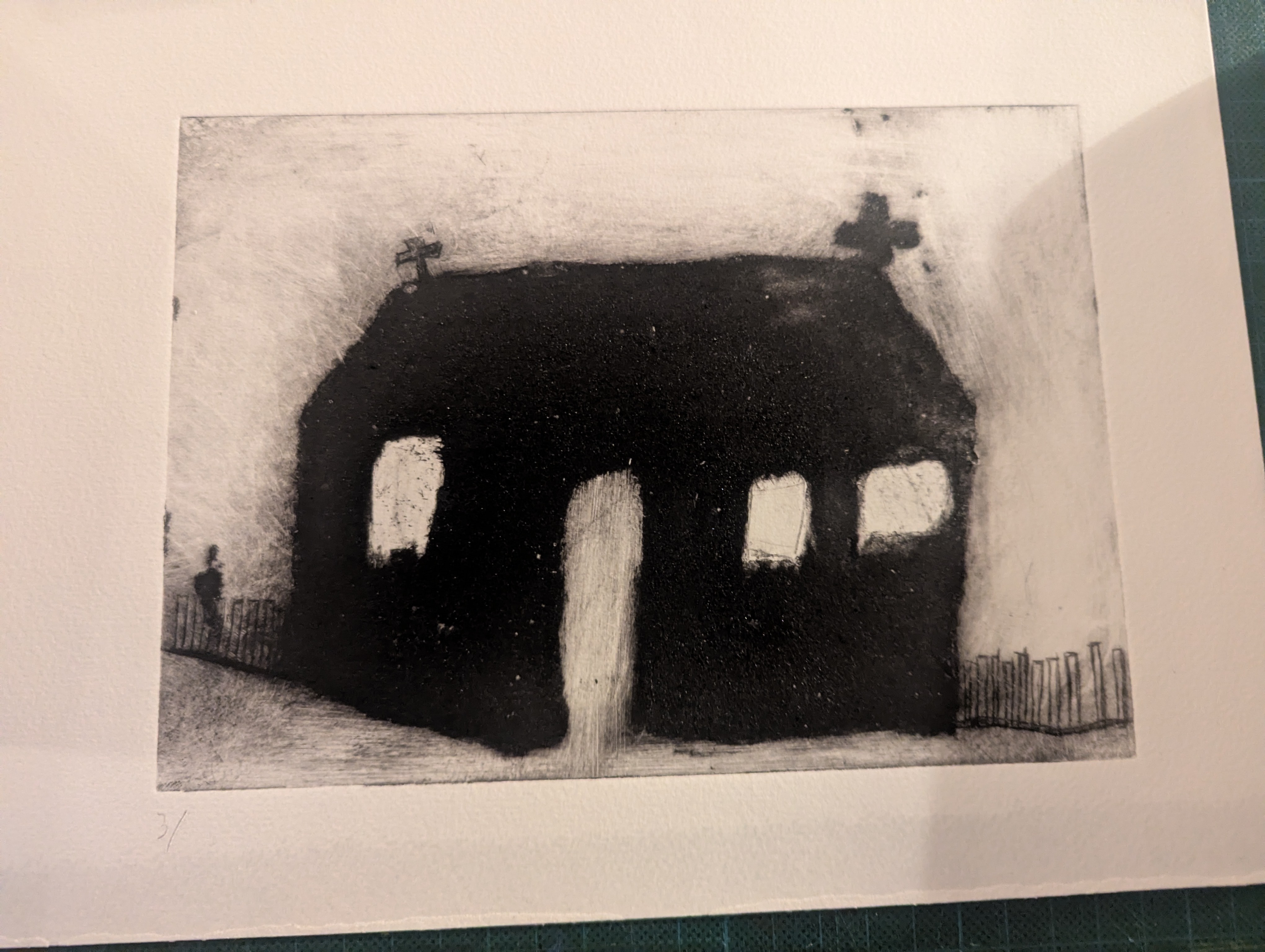 Avec la gravure, la matière devient la matrice. Elle offre la possibilité du gaufrage et des contrastes de noir et blanc, de la lumière et de l'obscurité.