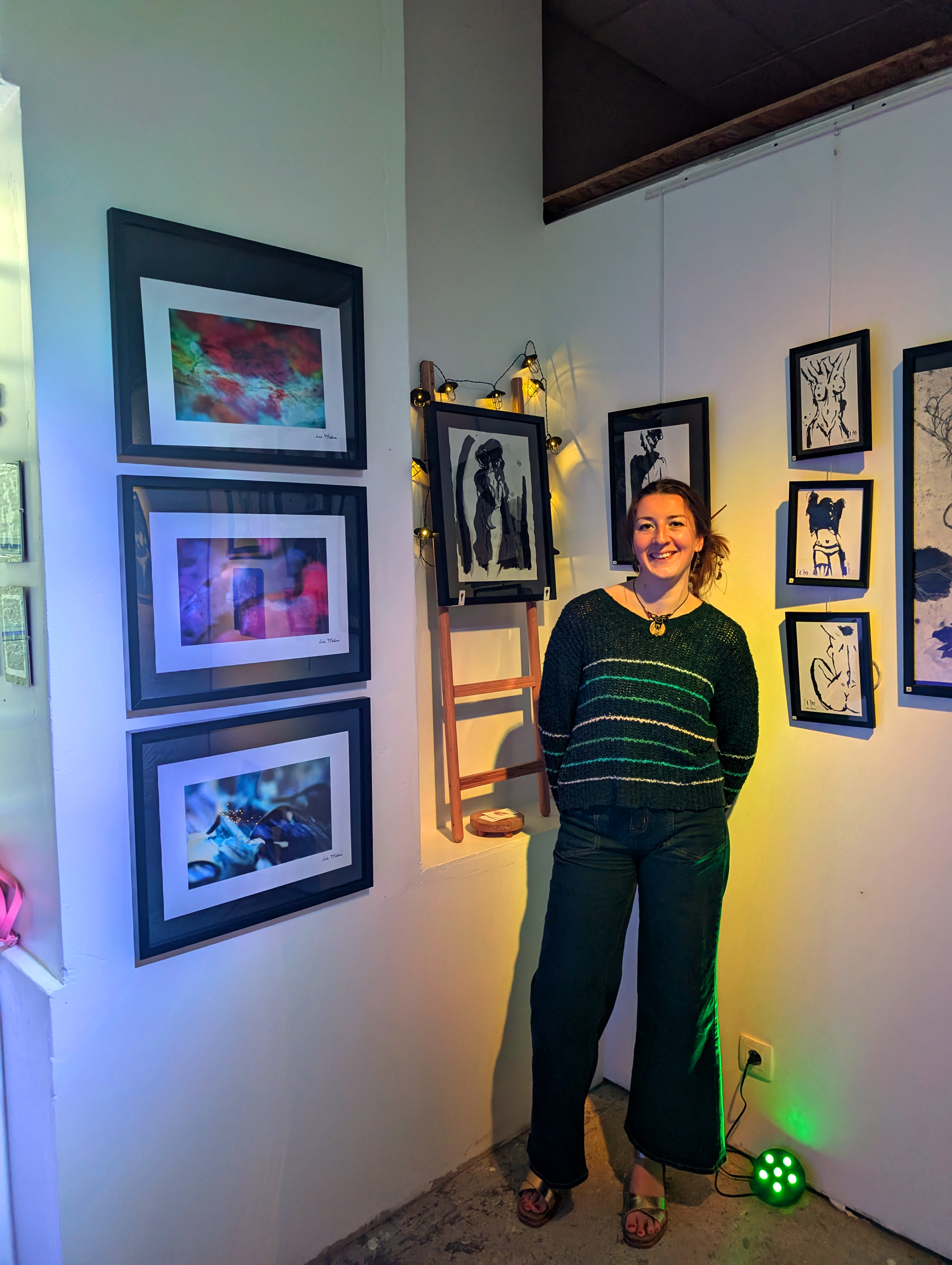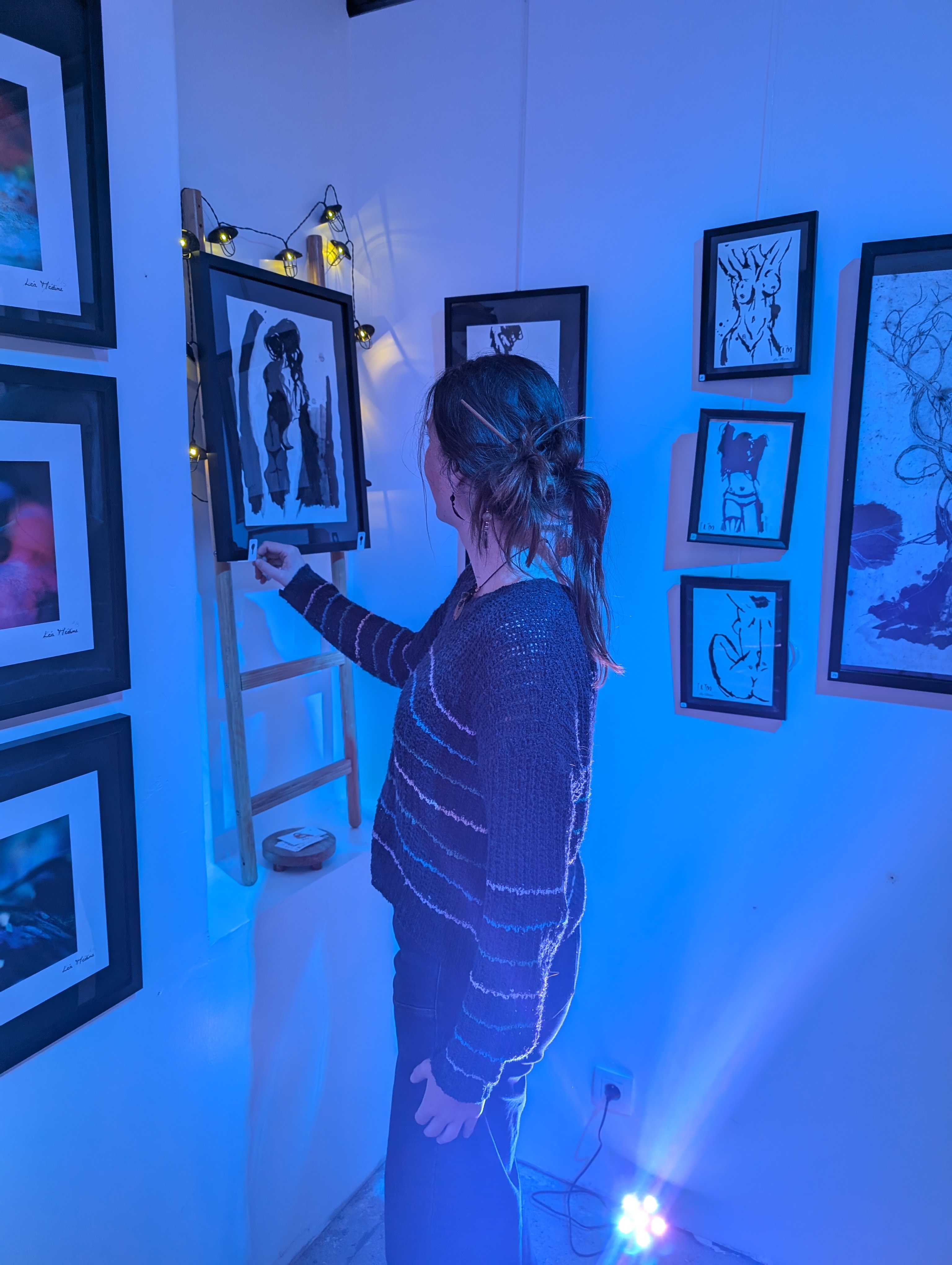 Curieuse et passionnée, Léa explore avec liberté une grande variété de techniques et de médiums : peinture, dessin, collage, textile, couture, photographie, cyanotype, linogravure…