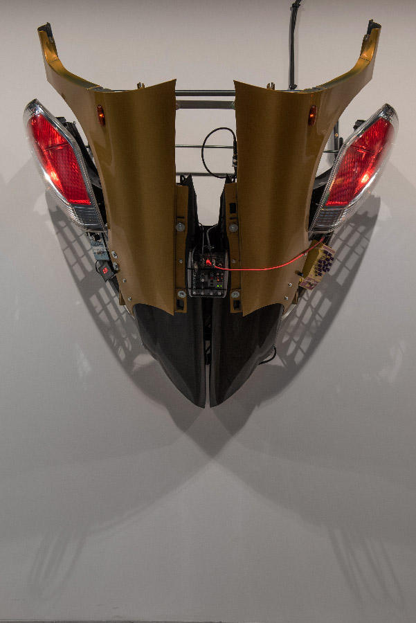 J’essaie de provoquer par la dérision, un décalage, un dérèglement du quotidien qui se transformerait en extraordinaire factice, en étrangement inquiétant. C’est du collage. J’assemble et mixe des histoires, des genres et des systèmes. Esthétique et design, bibelots et sculptures, kitsch et sacré, séduction et répulsion, réalité et science-fiction, normalité et magie. L’élément déclencheur de chaque pièce est issu d’un contexte local et/ou global ce qui me pousse naturellement a apporter un engagement écologique a mes productions tant par la thématique que par les matériaux utilisés.