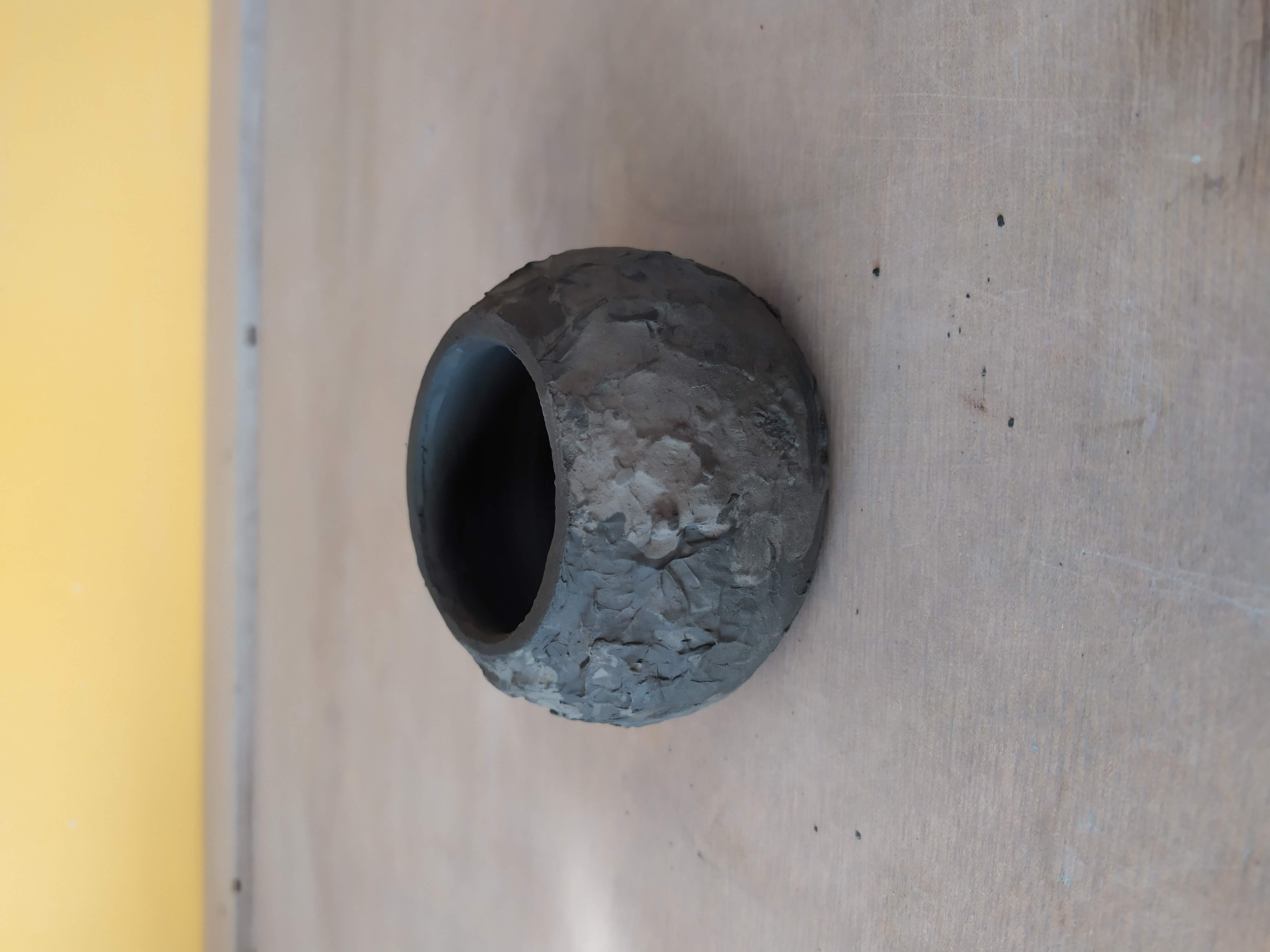 Matériel utilisé : croûteuse, four, cabine d'émaillage, argile et émaux basse température, grès laissé brut ou éventuellement patiné.