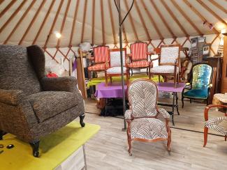 Je pratique la tapisserie d'ameublement dans une yourte.