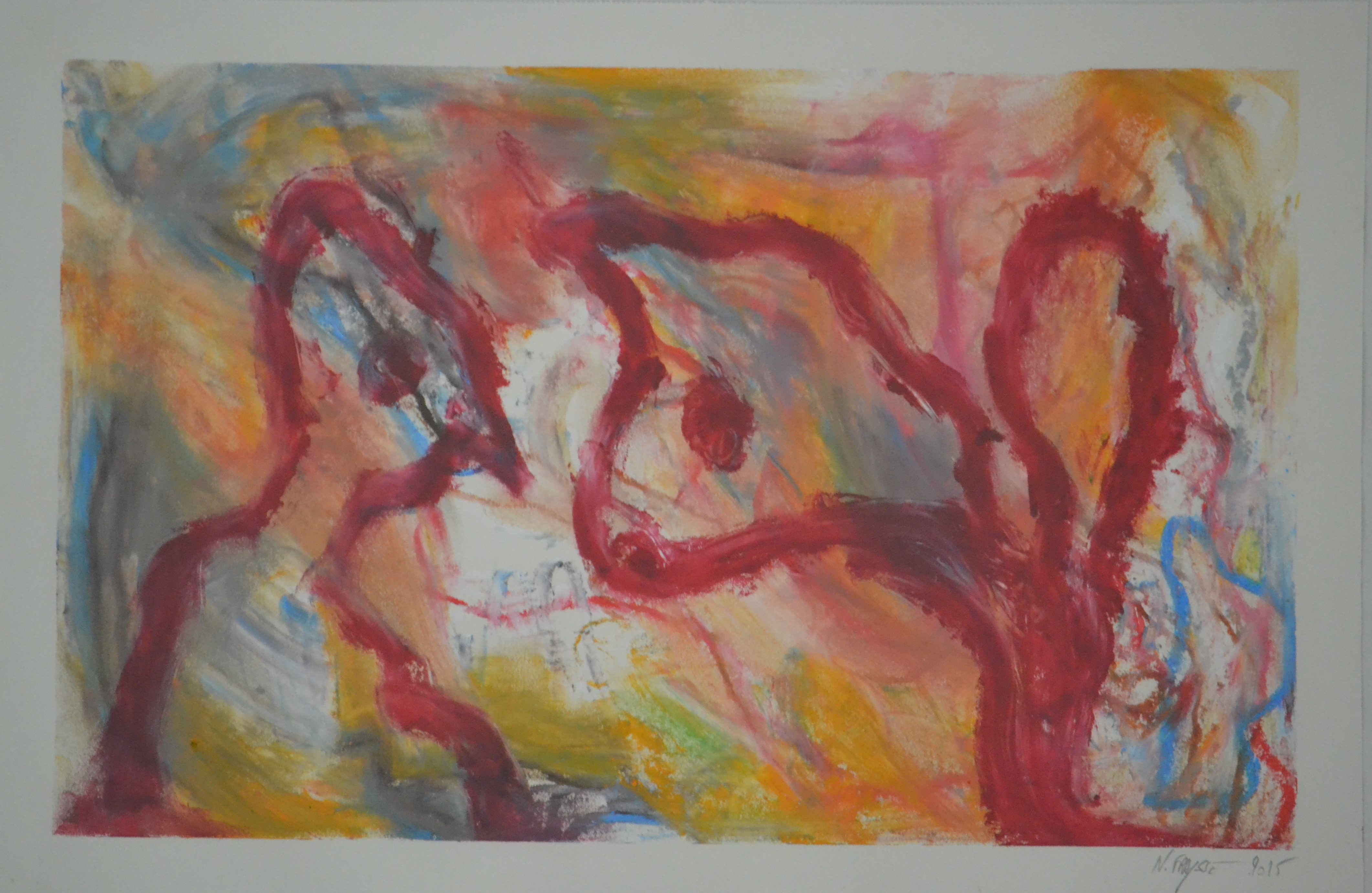 La couleur s'invite depuis quelque temps déjà dans les estampes que je réalise. J'abandonne peu à peu la gravure sur zinc, pour aller vers la gravure non toxique (ou moins toxique). La gravure sur carton offre cette possibilité. Ce matériau modeste et brut, multiple, cherche à être apprivoisé. Une fois la confiance établie, il se livre pleinement.