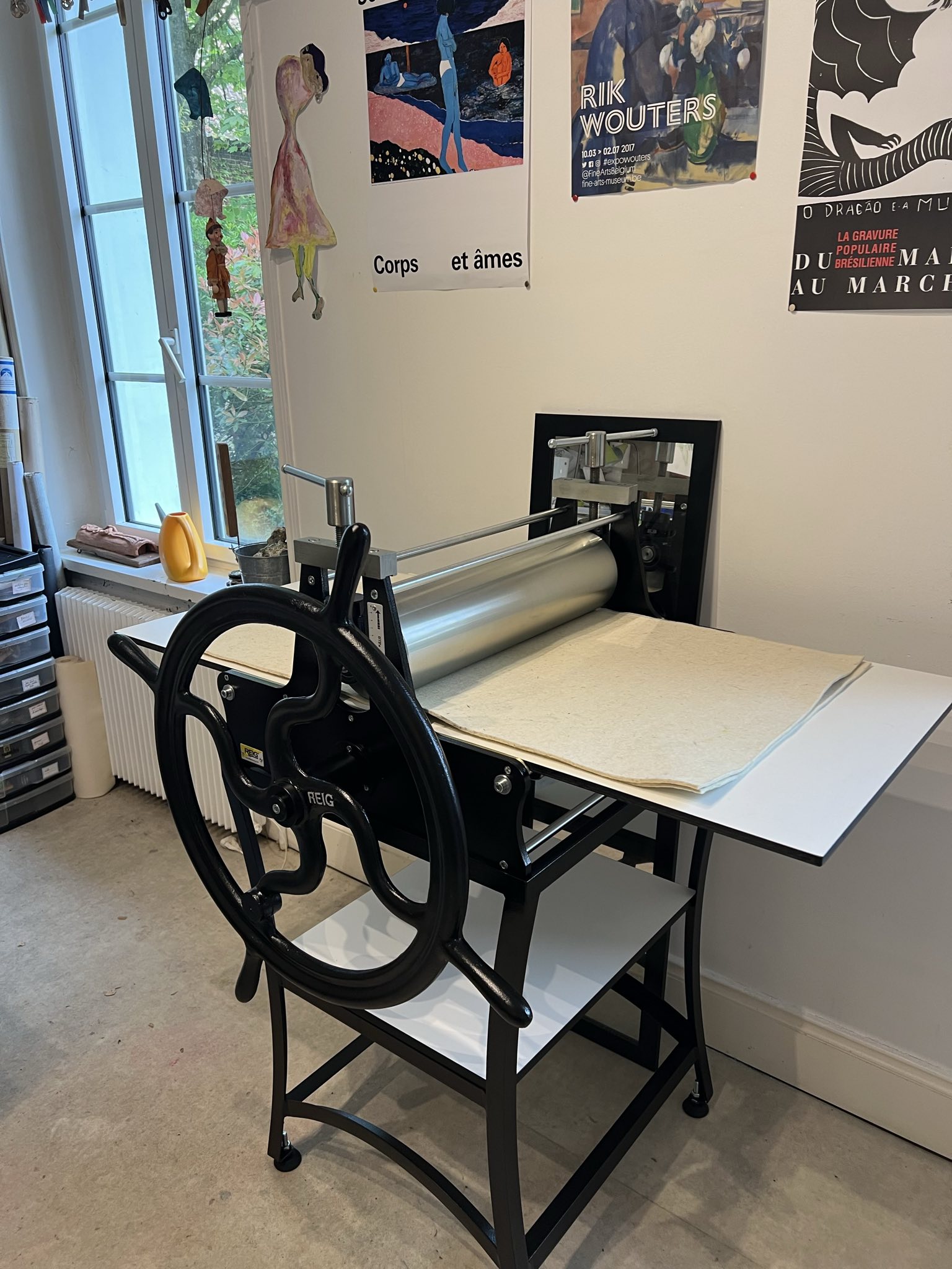 Formée à la gravure à l’ESA de Tourcoing auprès d’Alexis Trousset et au CAPV (Centre d’arts plastiques et visuels de Lille) auprès de Janusz Stega, ainsi que lors d’ateliers au Centre de la gravure et de l’image imprimée à la Louvière en Belgique, c’est dans mon atelier aujourd’hui situé dans le boulonnais que je poursuis mes expérimentations, mes tâtonnements et que j’anime également des ateliers de découverte de l’estampe pour tous publics.